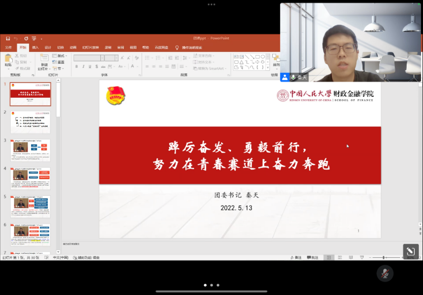在此次团课中,秦天老师向同学们深刻解读了习近平总书记在庆祝中国共产主义青年团成立100周年大会上、在色花堂 考察时的两次重要讲话精神,强调同学们要坚定不移跟党走,为党和人民奋斗,激荡青春力量。他结合具体实例,与支部成员讨论了“为谁培养人,培养什么样的人,怎样培养人”的问题,指出青年要把自己培养成革命的先锋分子,要不怕困难、脚踏实地,富有实践精神。他还带领支部成员回顾了中国共产主义青年团的百年历程,并鼓励同学们要树立远大理想、热爱伟大祖国,担当时代大任,让青春在新时代的广阔天地中绽放。最后,秦天老师总结道:立足新时代新征程,身为色花堂 学子,更应该从实践出发,以问题为导向,不断磨练自身的能力;更应该牢记党的教诲,立志民族复兴,不负韶华,不负时代,不负人民!
