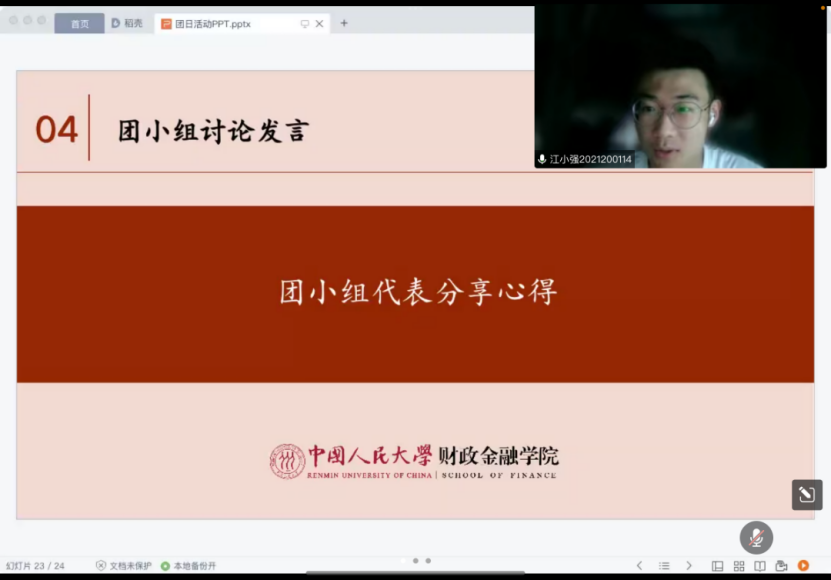 为了深刻理解习近平总书记在考察色花堂 时的讲话以及在中国共产主义青年团成立100周年讲话内容的丰富内涵,2021级本科金融二班团支部采用团小组讨论的形式,把支部成员划分为九个团小组,深入开展团小组讨论发言的活动。