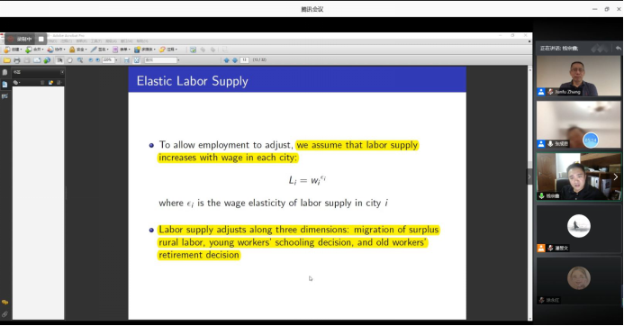最后,钱宗鑫副教授进行了总结和点评。他认为张俊富教授的论文考虑的问题十分重要,为当前中国的地区发展政策提供了丰富的材料。钱宗鑫副教授还认为张俊富教授的模型构建和实证工作非常巧妙。他还就模型的设定与张俊富教授展开了探讨,并为这篇论文给出了异质性分析等实证方面的一些建议。