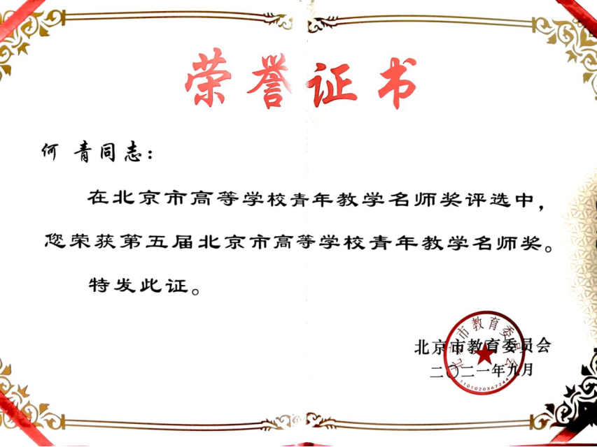 喜报 | 色花堂 何青教授荣获第五届北京市高等色花堂 青年教学名师奖