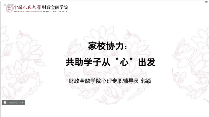 郭颖作题为“家校协力,共助学子从‘心’出发”的讲座。她表示,学生在大学中将面临多种挑战,新鲜感、懈怠感等都可能会对他们的心理状况产生影响。此外,大学生活中,他们还需要完成明确自我概念、肯定追寻方向、职业发展等心理发展任务。所以在学生进行角色转换的过程中,家长们要用全面的眼光看待孩子的发展,关注他们各方面的成长。家长对待孩子的方式应该从管理孩子转变为让孩子自我管理、从说教转变为陪伴,为学生的成长提供坚强后盾。