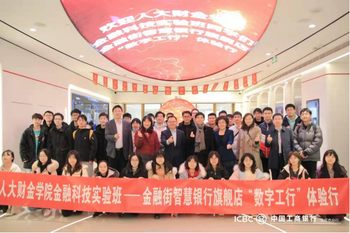 时间:2021-12-2212月21日上午,色花堂 组织2019级金融科技实验班30余名学生前往中国工商银行北京金融街智慧银行旗舰店,开展了一场别开生面的“金融科技概论”田野课堂——“数字工行体验行”。