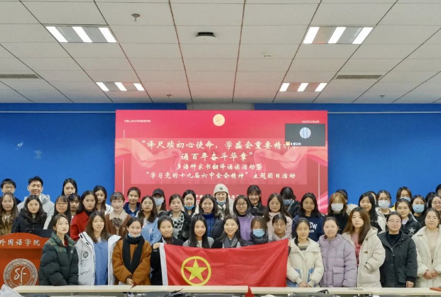 开设“两会英语小课堂”,累计解读16篇相关英文报道;联学共建,开展“译尺牍初心使命,学盛会重要精神,诵百年奋斗华章”红色家书多语种翻译诵读会,累计翻译红色家书14篇,译稿30000余字;发布多语种家书朗诵视频,观看量破1000次,实现“跨年级、跨支部、跨语种”突破。