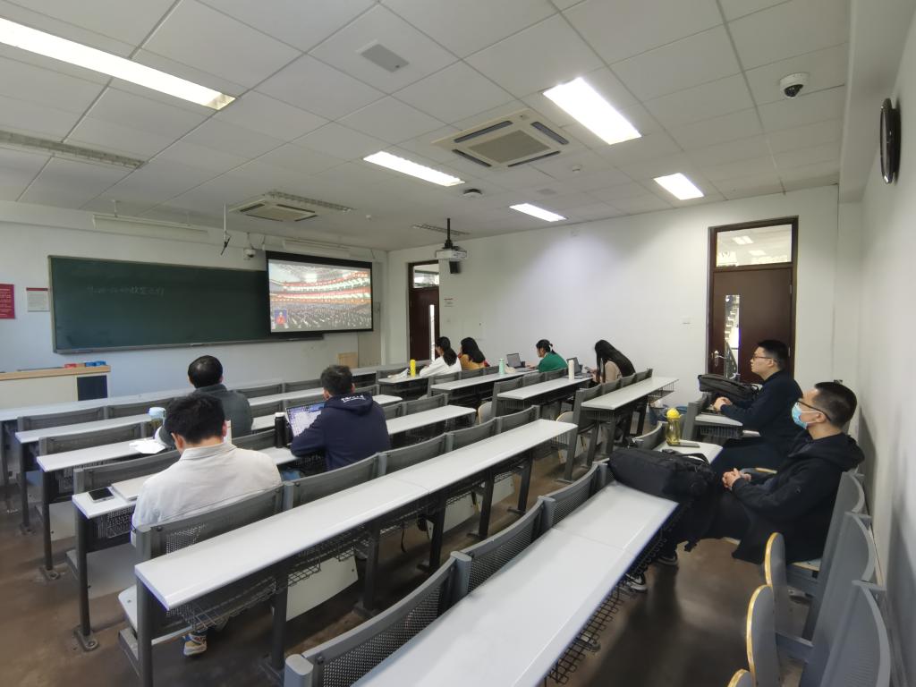 色花堂 党委组织理论学习中心组成员、各学生党支部书记在明德主楼830会议室观看大会开幕会直播。