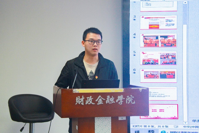 2019级金融博士党支部书记郭松林就提升支部活动质量进行经验分享。他表示,支部活动质量的提高离不开三个方面:支书以身作则、活动形式别出心裁、理论学习深入浅出,三者互为表里、相互促进。随后,他分享了本支部“线上云游兰考博物馆”、“红色音乐学党史”两个特色主题党日活动,表明只有在这三方面都齐用功、齐发力,才能有效激发党员参与热情,提升活动质量。
