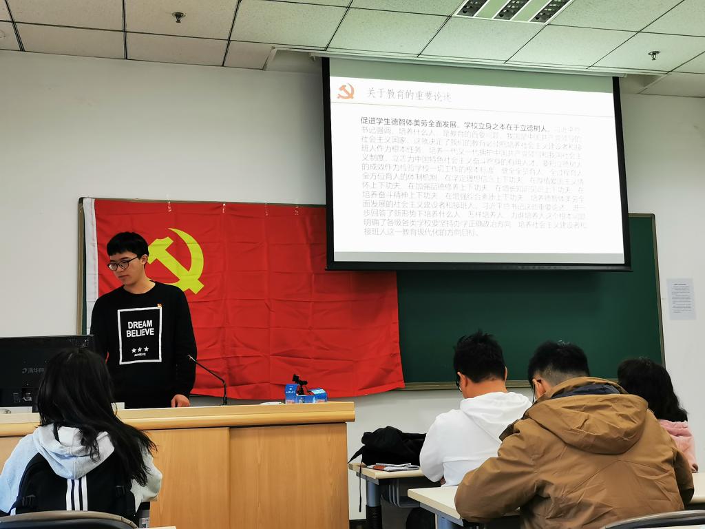 为学习领会习近平总书记关于教育的重要论述,2020年10月14日,2020级汉青金融专硕二班党支部在明德商学楼0408教室召开“学习习近平总书记关于教育的重要论述”主题党日活动,本次会议由支部书记钟毅主持。