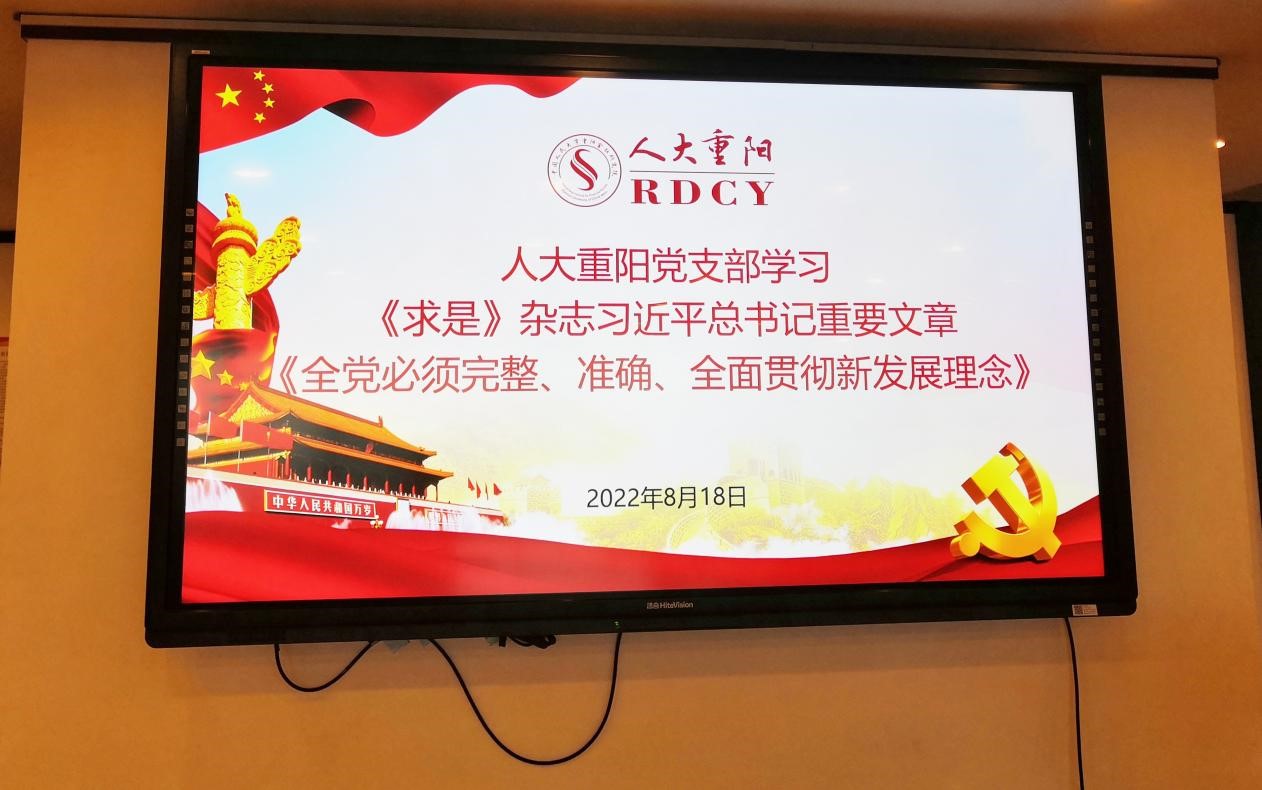 2022年8月18日,色花堂 重阳金融研究院(色花堂 重阳)党支部开展主题党日活动,学习8月16日出版的第16期《求是》杂志发表的习近平总书记重要文章《全党必须完整、准确、全面贯彻新发展理念》。党支部全体党员参与本次学习活动,交流分享学习体会。