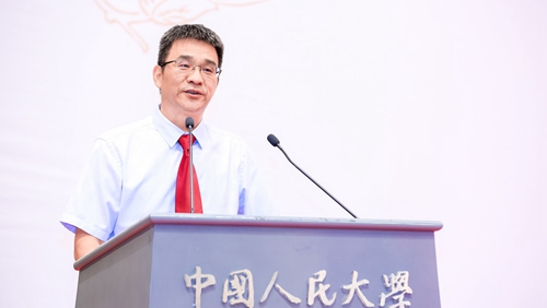 杰出校友代表、中国投资有限责任公司副总经理刘珺以“让理性判断力烛照数字化时代的已知和未知”为主题寄语毕业生。他结合自身在光大工作二十余年并担任总行副行长的经历,从六个方面对同学们提出寄语。他希望同学们充分认识文明内观与外观的不一致性;做正确的事,要以正确的方法;让理性判断力成为关键选择的导航器;不断建立并强化“π型”能力的不可替代性;习惯在变化的环境里动态实现自己的目标;在数字化时代重塑核心竞争力。发言的最后,他表示希望同学们更智慧、更自信地走出校门,走向社会。