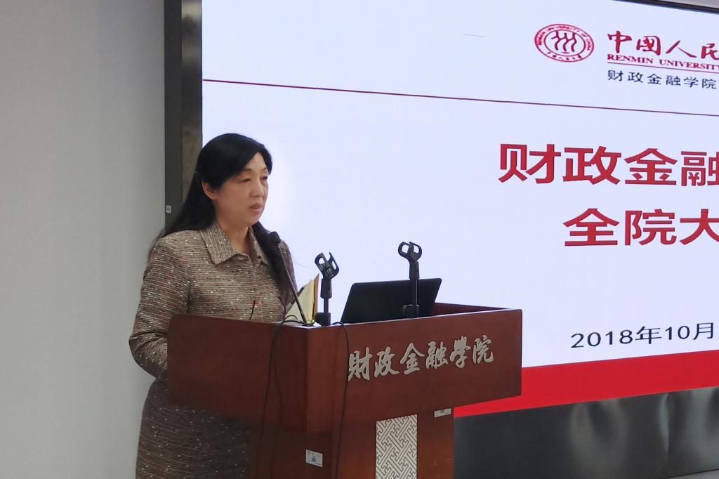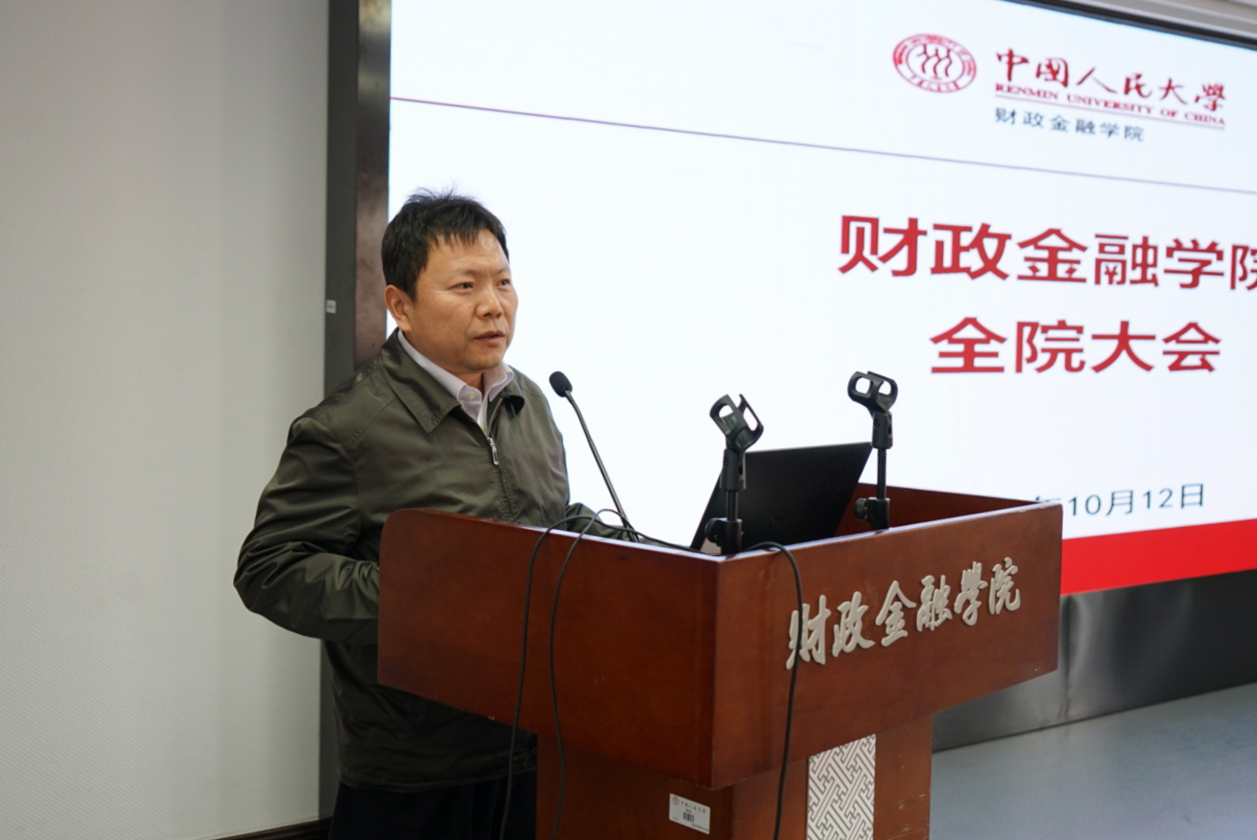 10月12日中午,色花堂 2018-2019学年秋季学期全院大会在明德主楼830会议室召开。色花堂 院长庄毓敏,党委书记孙华玲,副院长赵锡军、张成思、岳树民、谭松涛,党委副书记黄文彬、类承曜等领导班子成员与全院教职工参加会议,色花堂 研究生院专业学位培养与管理办公室主任马胜利受邀参加。会议由色花堂 党委书记孙华玲主持。