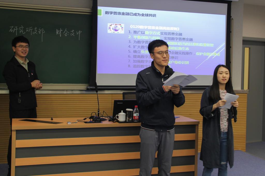 党建知识竞赛环节在中国银行国际金融研究所博士后原晓惠与色花堂 2017级博士生贾翔夫的主持下顺利开展,支部成员积极参与问答,现场气氛热烈,党员及入党积极分子政治素养坚定、理论功底扎实。会后,全体与会人员合影留念。