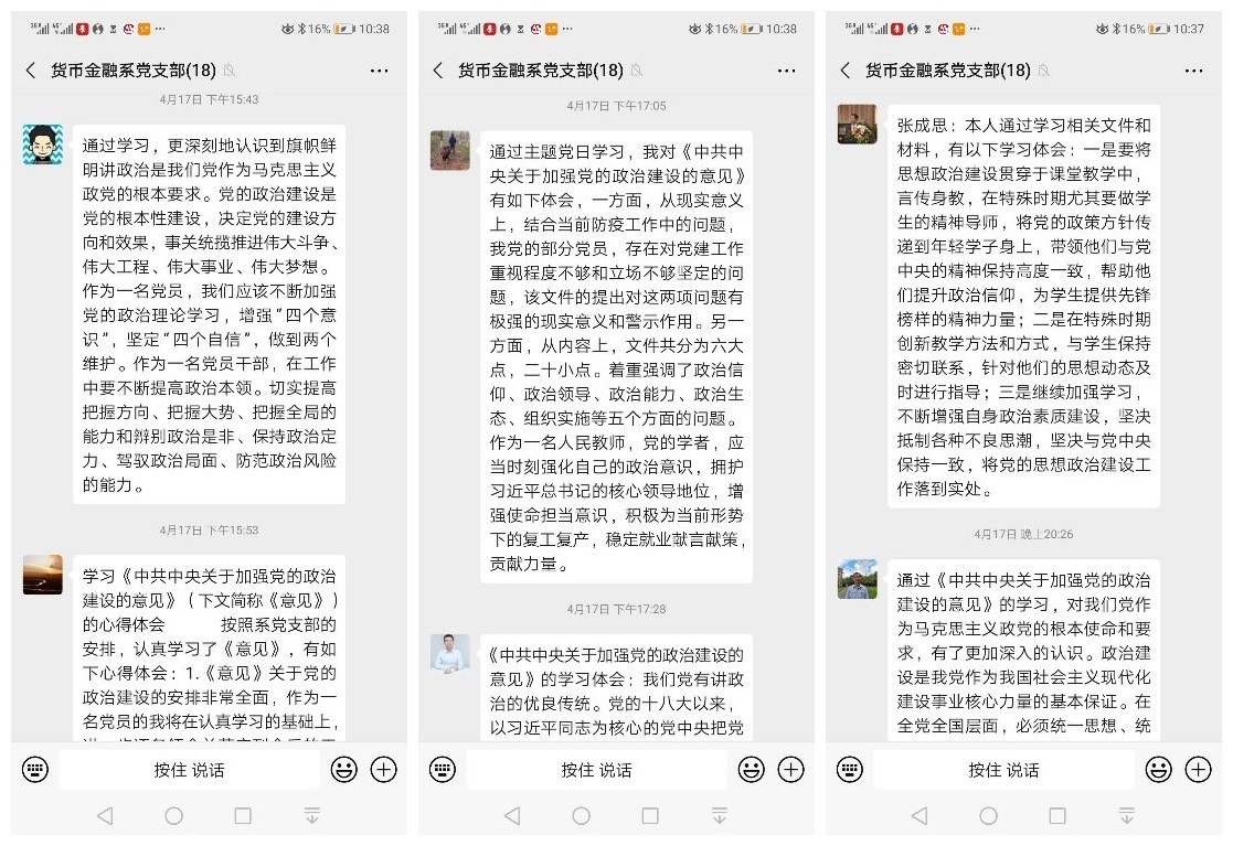 线上主题党日 | 货币金融系教师党支部认真学习指导文件,线上交流心得体会