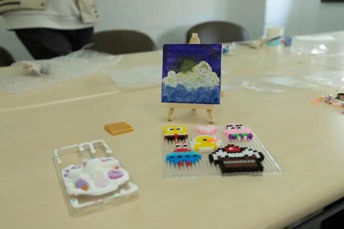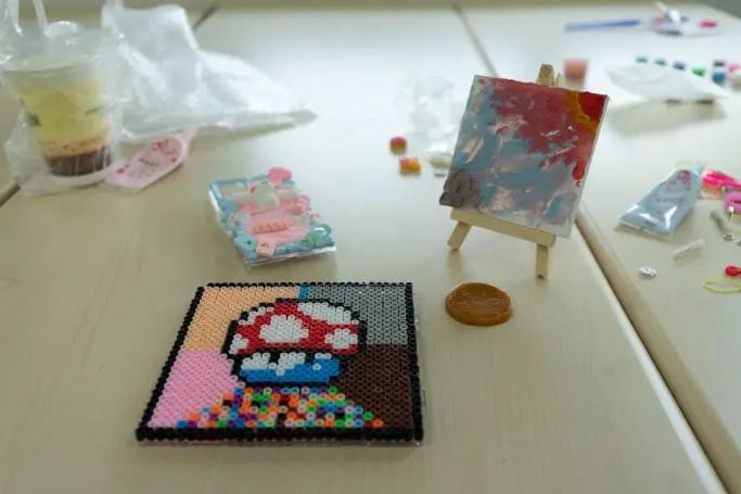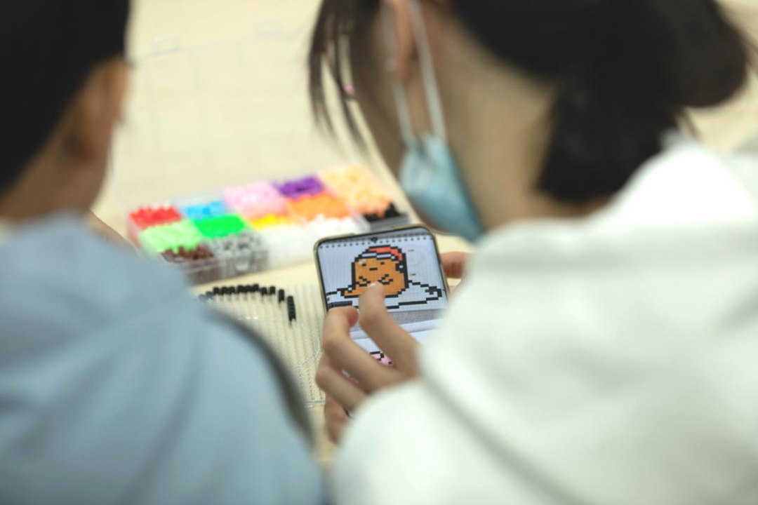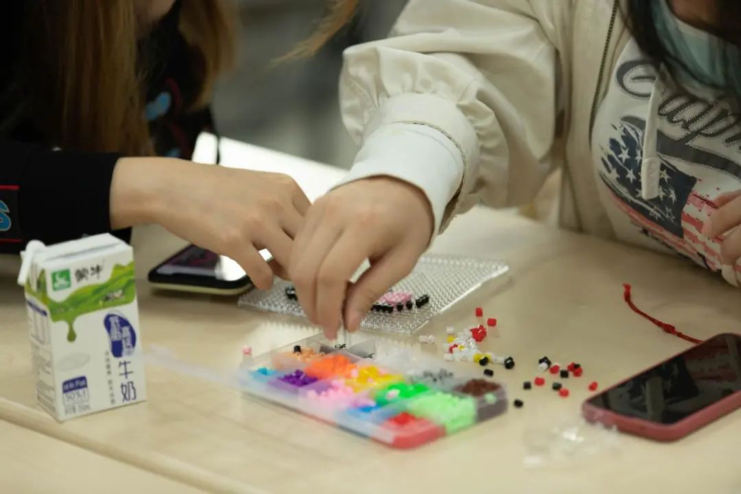 这么多五彩的拼豆,要用镊子小心夹取放置。