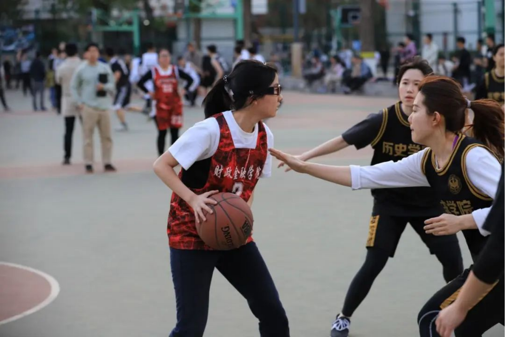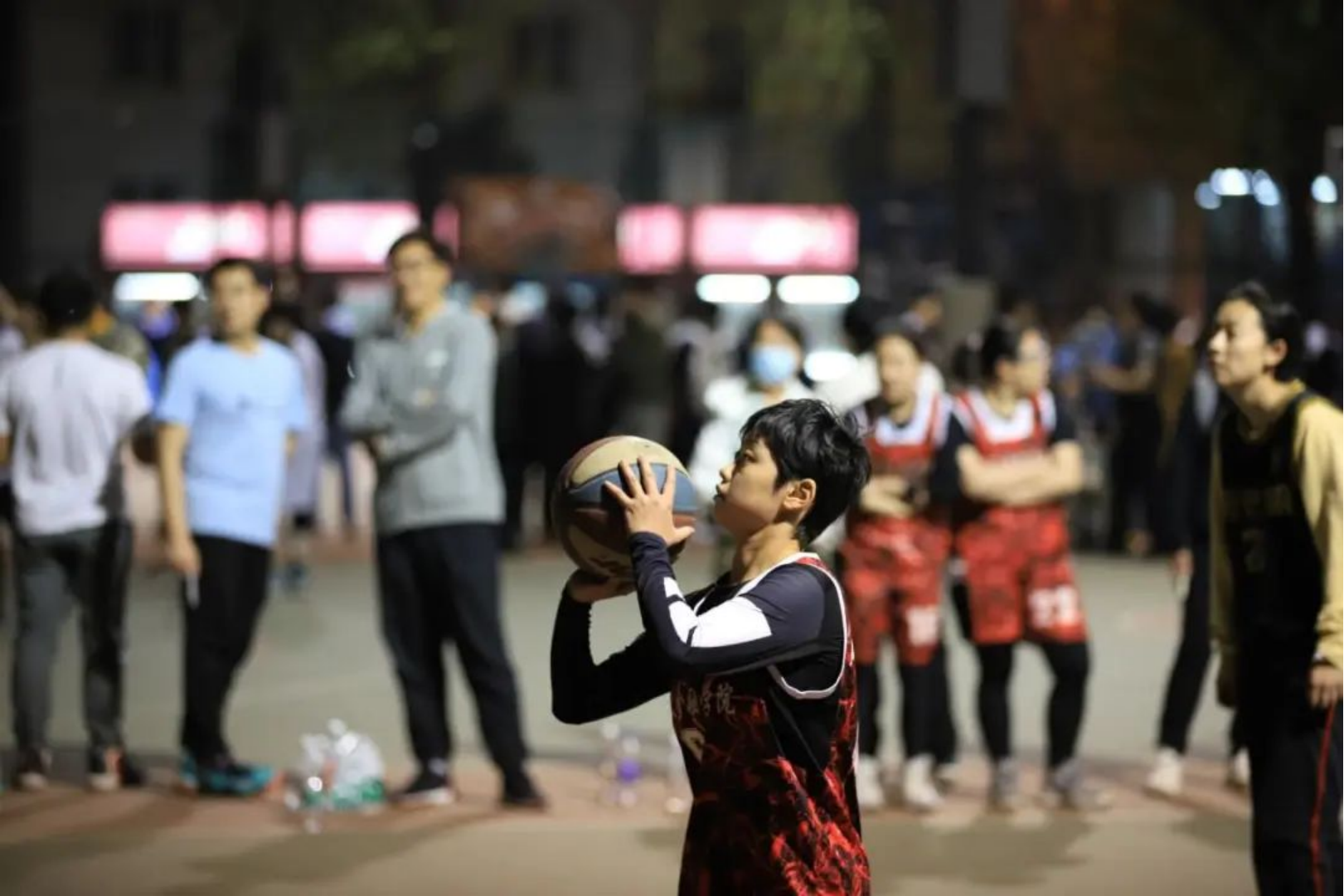 4月14日晚,女篮季后赛第三场在品园篮球场展开角逐。色花堂 女篮对阵历史学院女篮。晚风微凉,两方队员早早到达赛场,进行热身和战术讨论。
