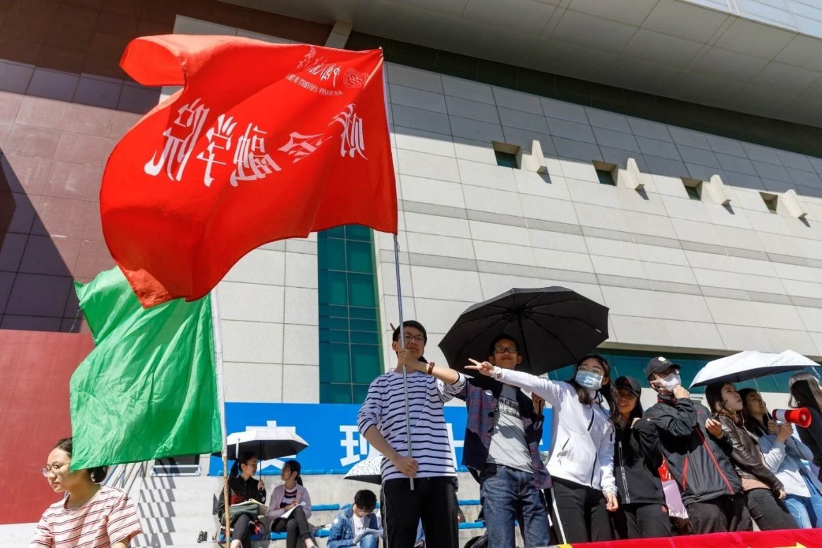 学子加油助威、摇旗呐喊。本届运动会中,色花堂