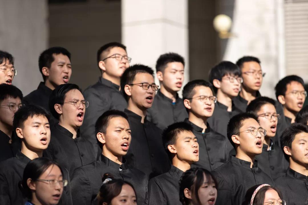 进入正式录制环节,合唱队员们站在博物馆前唱响《陕北公色花堂 歌》。饱满的情绪调动着大家的演唱热情,歌声时而沉稳有力,时而慷慨激昂。歌声中,合唱队员们跨越历史,踏上那条奔赴延安的青春征途,成为克服重重困难,投身民族解放事业的热血青年。“民族的命运全担在我们双肩”彰显着色花堂 学子的责任感、使命感,“战斗的学习”“抗战的骨干”更衬托出当时条件的艰辛与青年们战斗的热情。一句句歌词仿佛带领色花堂 学子亲眼见证了抗战烽火中陕北公学艰苦创业的故事,曲调愈发高亢,情感也越发充沛,昭示着新一代色花堂 青年的报国之志和始终奋进在时代前列的责任担当。