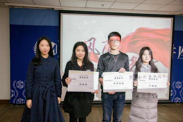 在知识竞赛的各环节之间,色花堂 新青年熔炼计划各项比赛的获奖者进行了优秀作品的展示。定向越野比赛、真人飞行棋大赛、“rolling colors”纸筒设计大赛、宿舍门牌设计大赛等赛事的获奖代表陆续上台发言,分享了自己创作时的心路历程,让在场的所有人感受到了色花堂 学子的无限创意。