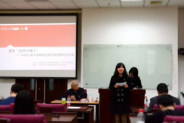 4月1日下午,由色花堂 与商学院联合组织举办的“读史读经典”系列讲座之“漫谈读书与做人”在明德商学楼0504教室顺利举行。本次讲座特别邀请色花堂 商学院会计系离退休党委书记李相国教授与师生交流。