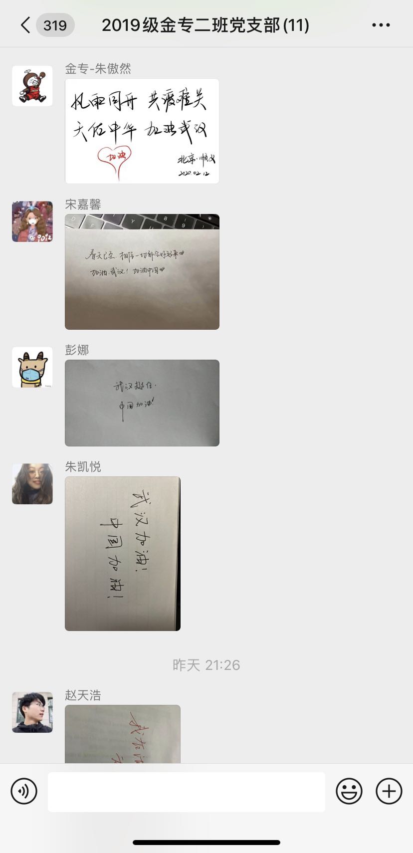 线上主题党日|2019级金融专硕二班党支部手写祝福,同心抗疫