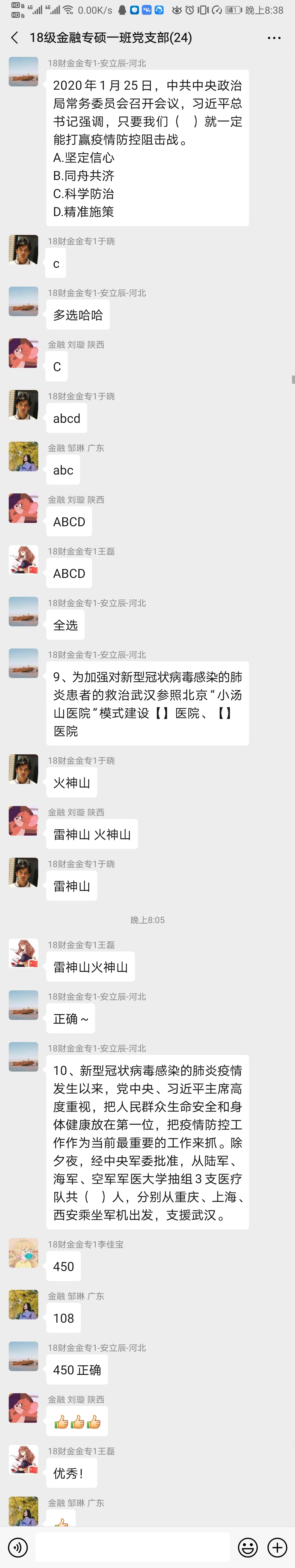 线上主题党日|2018级金融专硕一班党支部开展知识竞赛,坚定“战役”决心信心