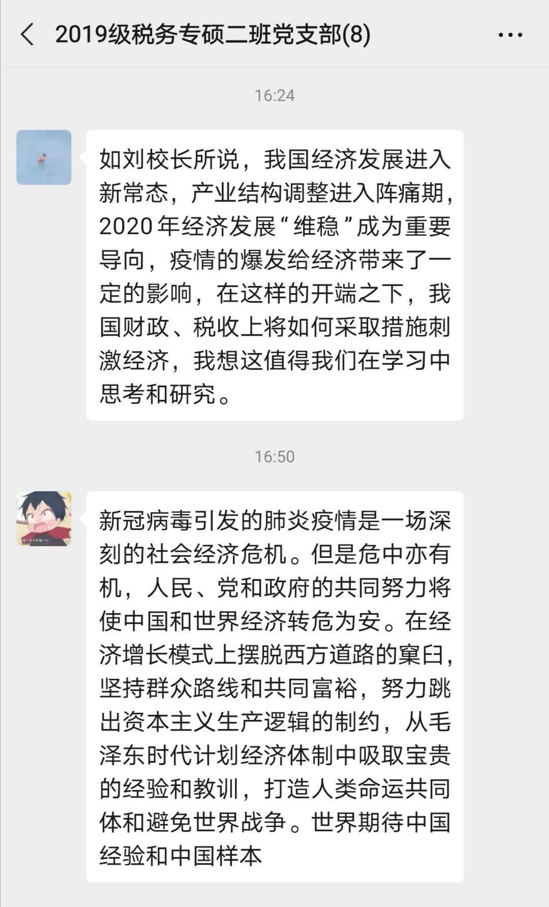 线上主题党日|2019级税务专硕二班党支部共同学习防疫公开课,积极分享学习感悟