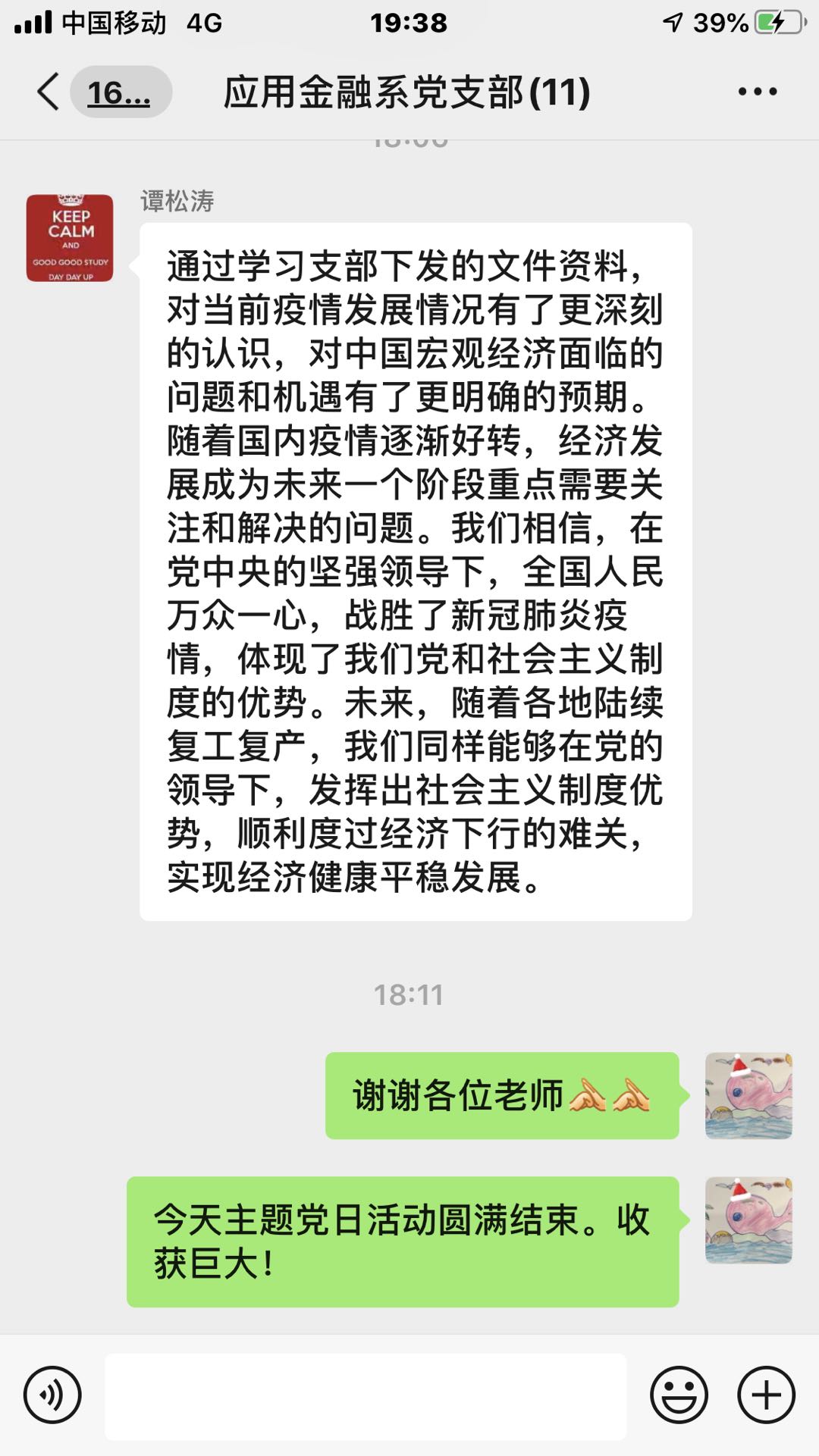 线上主题党日|应用金融系教师党支部学习讨论抗疫经验,深刻分析经济形势