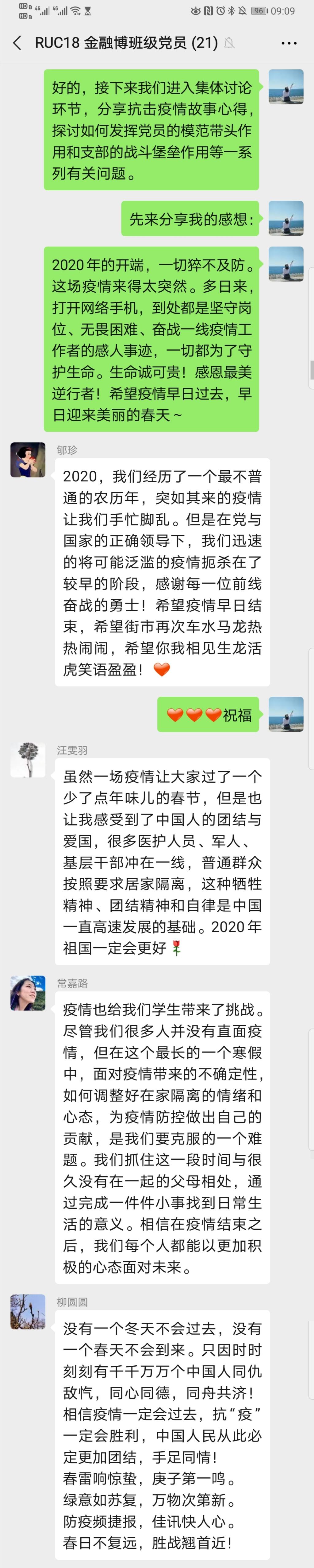 线上主题党日|2018级金融博士班党支部分享抗疫心得,送抗疫祝福