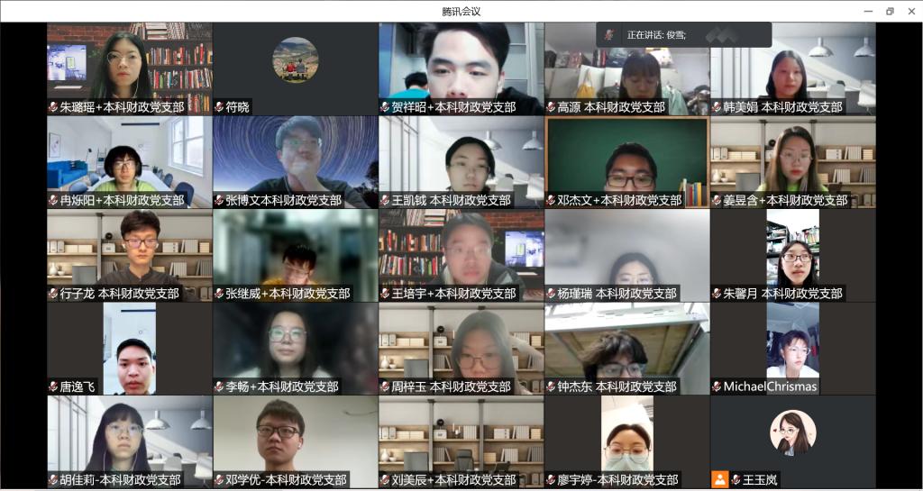 2022年5月6日,贾俊雪副院长通过腾讯会议平台为本科财政党支部、2020级税务专硕一班党支部与2020级税务专硕二班党支部宣讲习近平总书记在色花堂 考察时的重要讲话精神。