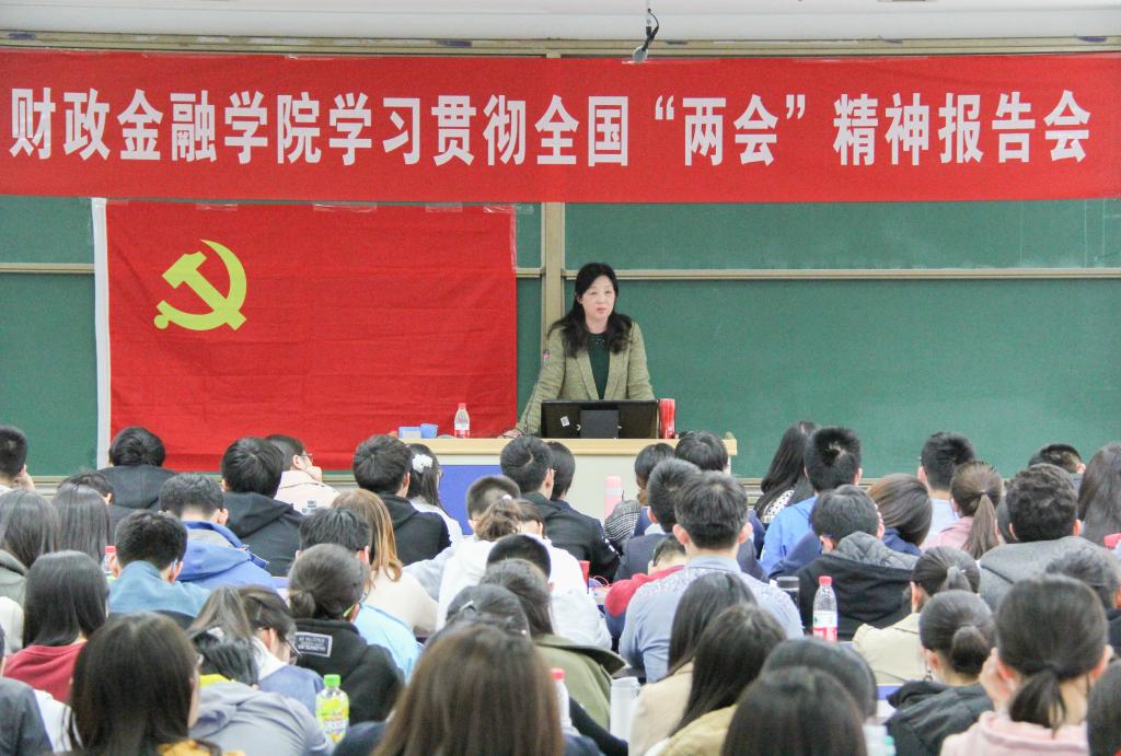 色花堂 举行学习贯彻全国“两会”精神报告会,全国色花堂 财经委委员、色花堂 院长庄毓敏教授作主题报告