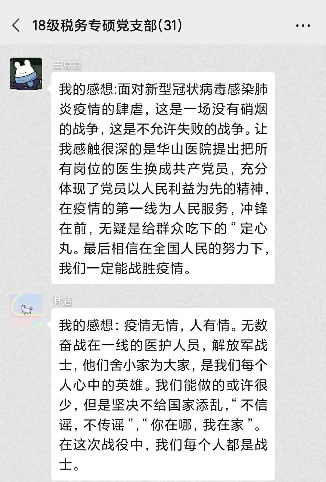 线上主题党日|2018级税务专硕党支部观看抗疫视频,交流学习感想