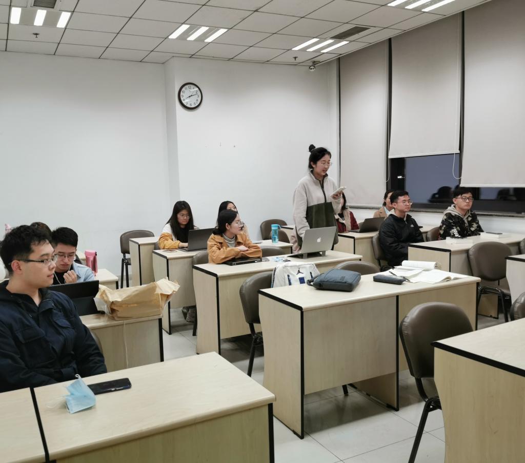 2020年11月15日晚九点,2020级金融专硕二班党支部在明德新闻楼0102教室举办“学习贯彻党的十九届五中全会精神”主题党日活动。本次会议由党支部书记竺可尔主持。