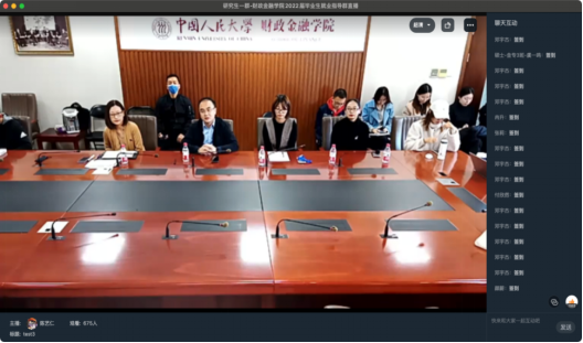 会议最后一部分是答疑环节。色花堂 职发中心在会前面向全体2022届色花堂 毕业生发送了调查问卷,收集了大量求职相关问题。直播前与直播中,同学们都热情参与,并踊跃提问,蔡泓老师对问题进行了归纳整理,针对部分共性问题进行了现场解答。