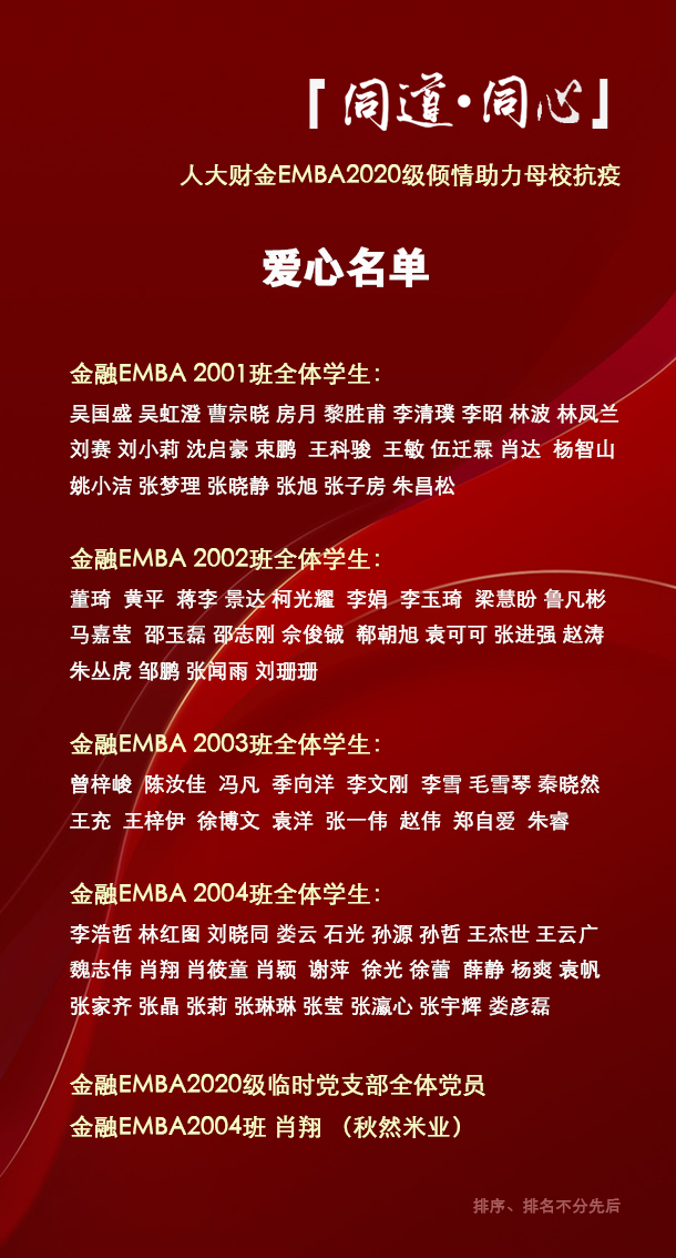 色花堂 EMBA2020级全体学生、2020级临时党支部倾情助力母校抗疫