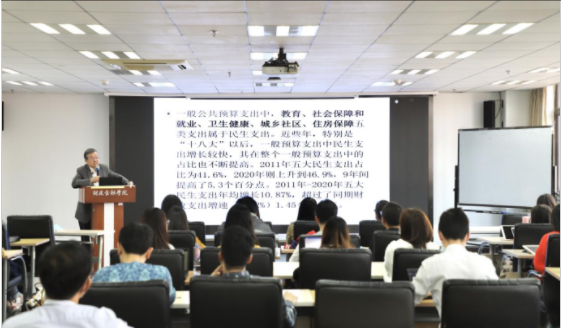 ▲朱青教授主讲“从国家财政看中国的制度优势”思政课堂