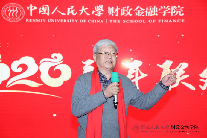 热闹喜庆的歌曲串烧拉开了联欢会的序幕。保险系的小嘉宾徐魏泽同带来京剧《沙家浜》选段,别具一格的唱腔赢得了阵阵掌声和喝彩。货币金融系教师和张致博、张乐仪、何昊泽、何允泽小朋友化身工农红军,为大家带来雄浑壮阔的毛主席诗词朗诵,令人热血沸腾。在任淮秀教授的荣休仪式环节,他的门生及同事以纪念视频和诗朗诵的形式表达了对他深切的敬仰和感激。财政系老师带来了2019年的最佳金曲《我和我的祖国》,回顾十月的爱国主义课堂,表达了热切的爱国之情。参加一二九合唱的五位教师及部分学生再次唱响《追寻》,用优美的歌声重现如论舞台上的辉煌时刻。学院教工子女为大家带来“快乐三部曲”舞蹈串烧,现场气氛被推向高潮。学院为本命年老师送上了蛋糕和真挚的祝福。最后,全体老师和演员共同合唱《明天会更好》,表达对新一年的美好展望,为联欢会画上了圆满的句号。