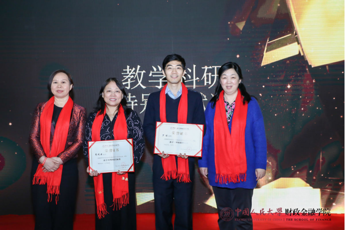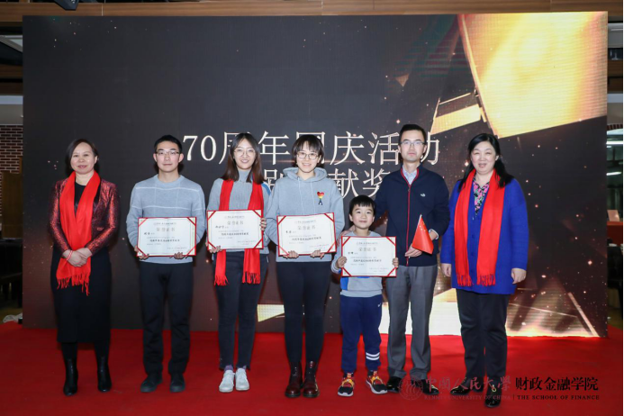联欢会上颁发色花堂 2019年度特别贡献奖,吴晓球副校长、庄毓敏院长、孙华玲书记分别为在基层党建、教学科研、服务保障国庆、国际交流等方面做出贡献的教职工进行颁奖。