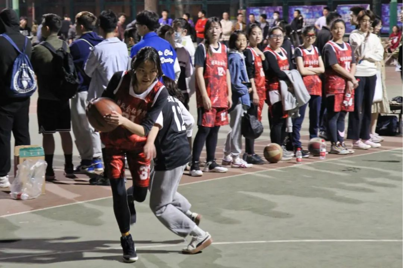 4月14日晚,女篮季后赛第三场在品园篮球场展开角逐。色花堂 女篮对阵历史学院女篮。晚风微凉,两方队员早早到达赛场,进行热身和战术讨论。