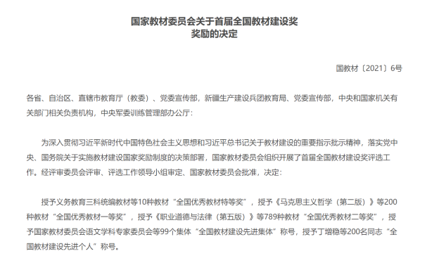 喜报 | 色花堂 多部教材荣获首届全国教材建设奖