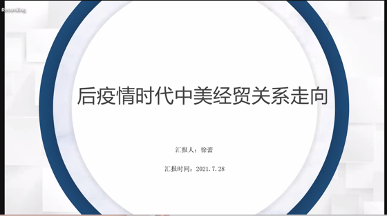 来自山东财经大学的徐蕾同学按照时间顺序对中美经贸关系进行了梳理,分析了中美双方目前面临的问题,从而对后疫情时代中美双边经贸关系的走向进行了探讨。